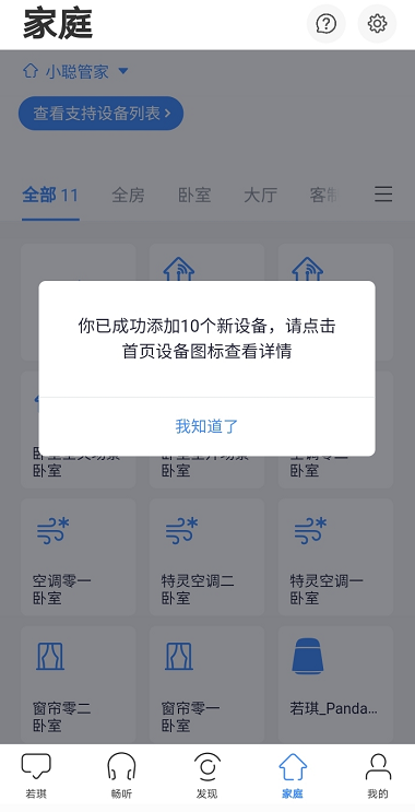 要特别注意的是:目前还不支持多个房间的语音场景设置,所以你的若琪音响在哪的房间,就只能在那个房间