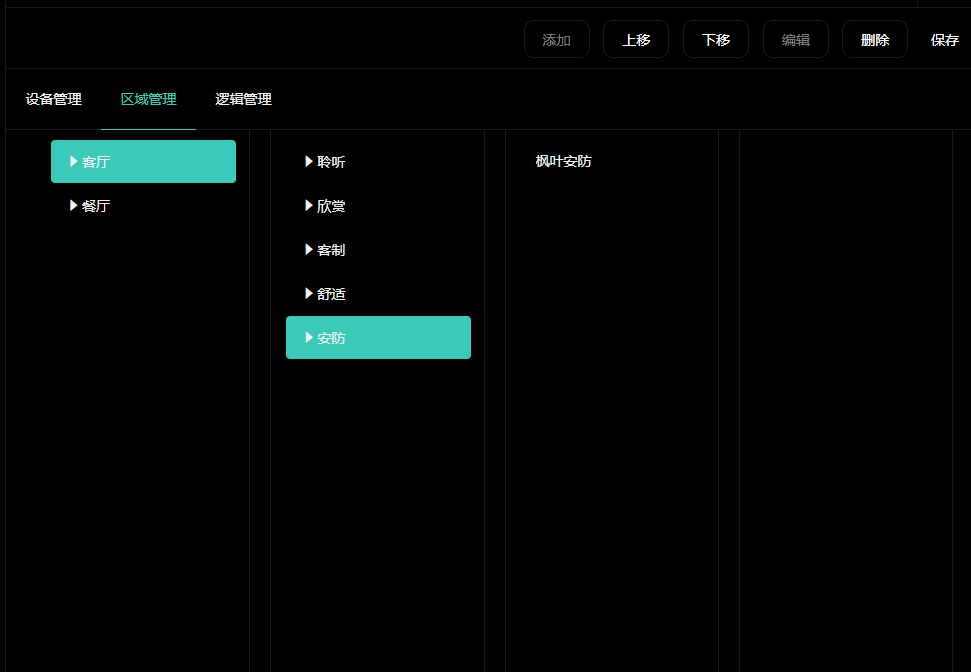 点击保存,自动跳转到区域管理页面,选择一个区域,点击“添加”,点击“安防”,选择安防类型名,勾选枫叶安防,点击“保存”即可。